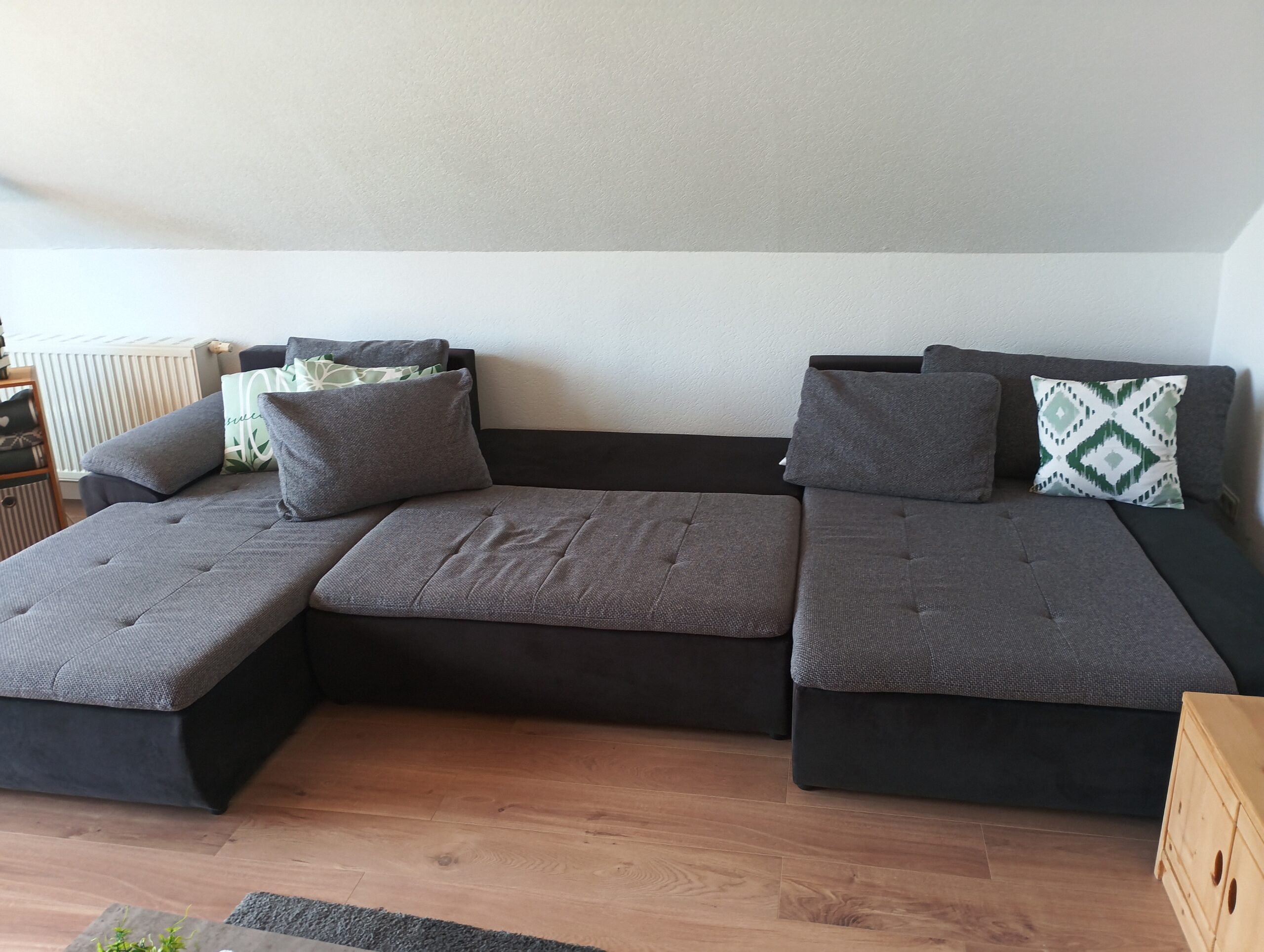 Das Wohnzimmer ist mit einer großen Couch ausgestattet, die zur Schlafcouch umgebaut werden kann. Digitales Satellitenfernsehen und WOW-Stick sind vorhanden. Über die Balkontür gelangt man auf den Südbalkon. Hier finden Sie Sitzgelegenheiten und einen Tisch. Über eine Wendeltreppe gelangt man in den Gartenbereich mit Sitzterrasse und Grill.